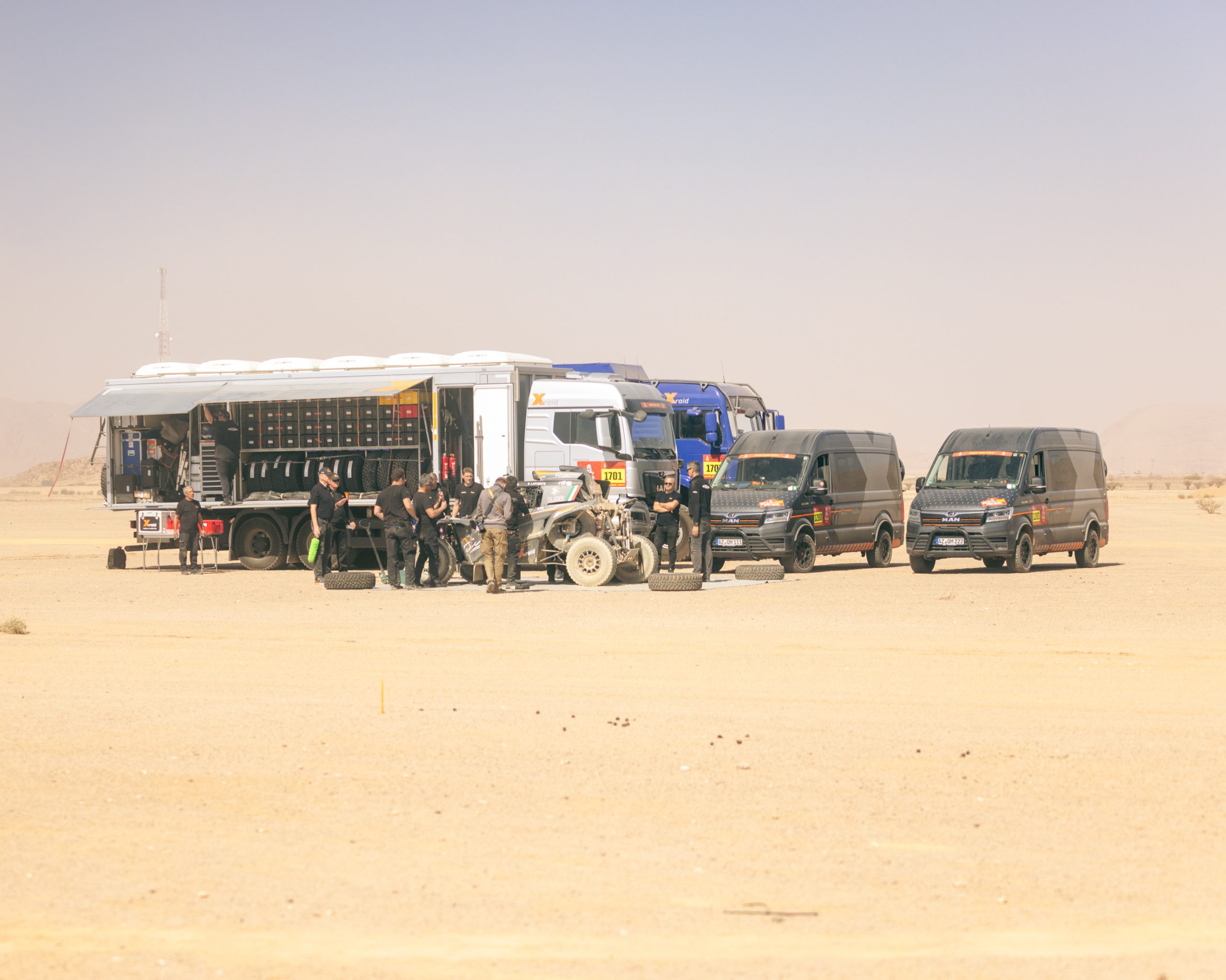 Die vier Service Fahrzeuge wurden umfassend modifiziert, um den anspruchsvollen Anforderungen der Rallye gerecht zu werden und als verlässliche Basis für das X-raid Team zu dienen. Jedes Fahrzeug erhielt folgende Upgrades: