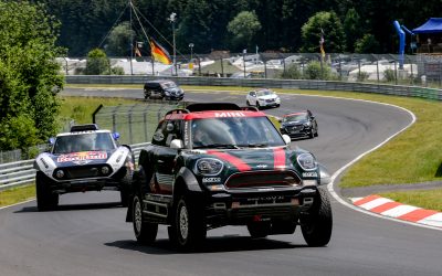 Während Terranova in Italien um den Sieg kämpfte, begaben sich Stéphane Peterhansel und Stephan Schott auf ungewohntes Terrain. Im Rahmen des ADAC Total 24h-Rennens auf dem Nürburgring nahmen die beiden Piloten im MINI JCW Buggy und MINI JCW Rally an einer Demorunde kurz vor Rennstart Teil. „Wir waren zwar langsam unterwegs, aber die Nordschleife ist extrem beeindruckend“, erzählt Peterhansel. „Ich bin hier noch nie gefahren. Die Kurven und die Höhenunterschiede machen viel Spaß. Eine tolle Erfahrung.“